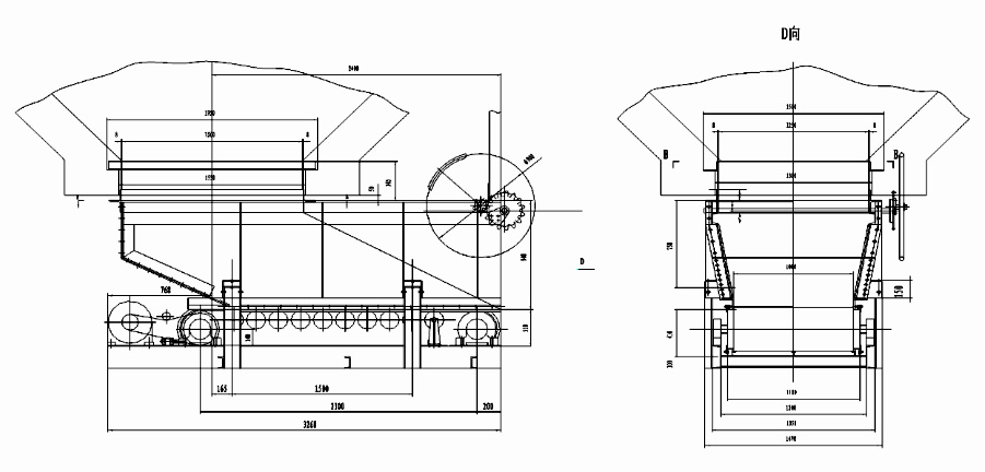 甲帶給料機有連接段、導料槽、閘門機構、驅動電機、傳動滾筒、改向滾筒、環(huán)形膠帶和甲帶等組成的,環(huán)形膠帶被甲帶包裹,環(huán)形膠帶主要起牽引作用,甲帶是承載運輸物料的主要部件,這樣甲帶有效的保護了環(huán)形膠帶不被堅硬物煤、雜物劃傷、撕裂的危險。驅動裝置由減速機經(jīng)鏈輪帶動驅動滾筒;驅動裝置和甲帶給料裝置均安裝在托架上,并可調整位置;為減少摩擦力,給料機導料槽橫截面為倒梯形。