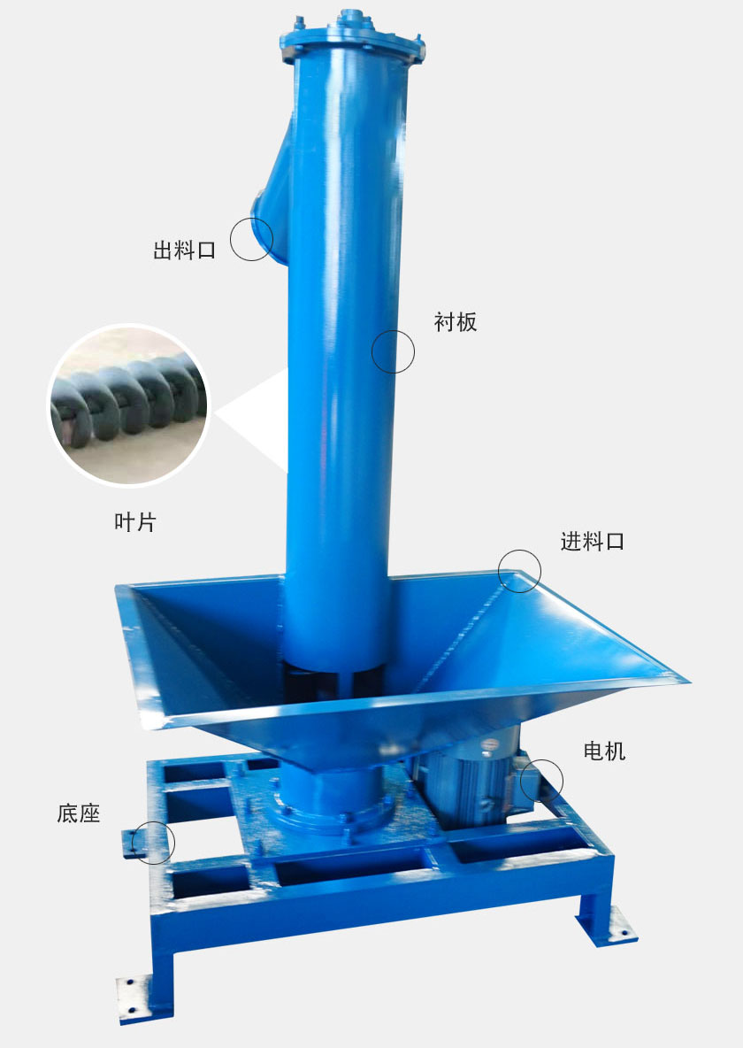 垂直螺旋輸送機(jī)依靠較高的螺旋速度向上輸送物料,螺旋葉片與管壁與物料充分接觸,磨損快,會(huì)增加維護(hù)成本。