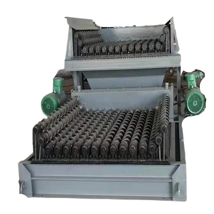 BS系列礦用波動篩是火力發電廠輸煤系統的重要設備之一,在冶金、建材、化工、煤炭等系統也可廣為利用。波動篩是由多根平行排列的滾軸組成,一般為6~10根滾軸,多達20根滾軸。滾軸上裝有梅花形篩片。滾軸由電動機和減速器經鏈輪或齒輪帶動滾軸旋轉。轉動方向與物料方向相同。